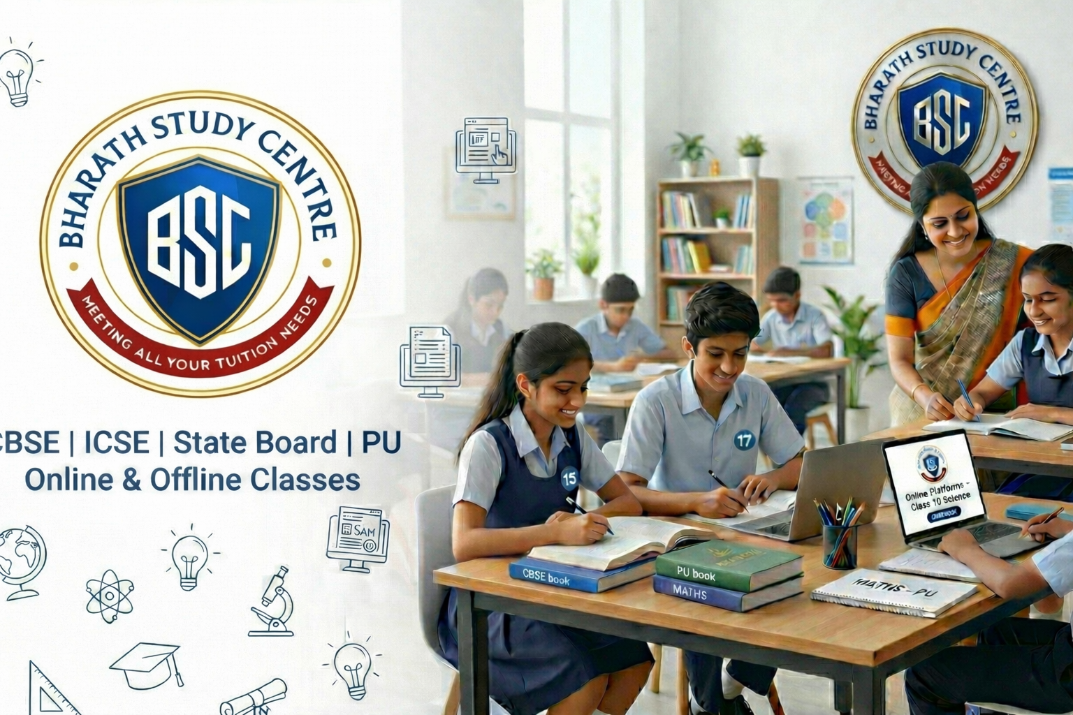 Bharath Study Centre is one of the most trusted coaching and home tuition providers in Bangalore, delivering high-quality academic support for CBSE, ICSE, State Board, and PU students. We specialize in personalized learning through online classes, offline classroom coaching, and home tuition, ensuring flexibility and convenience for every student.